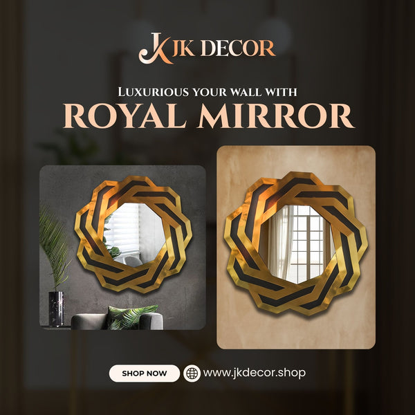 Shape: Octagonal with a multi-layered, intricate frame. Frame Details: Polished golden-toned metal...